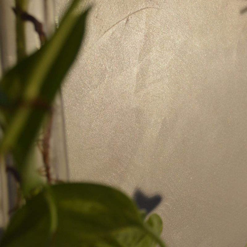 Its formulation blends fine mineral fillers, natural and synthetic resins, and high-quality metallic pigments to create a surface with a velvety touch and a gentle pearlescent glow. Light interacts delicately with the finish, producing depth, movement and a refined, understated luminosity.